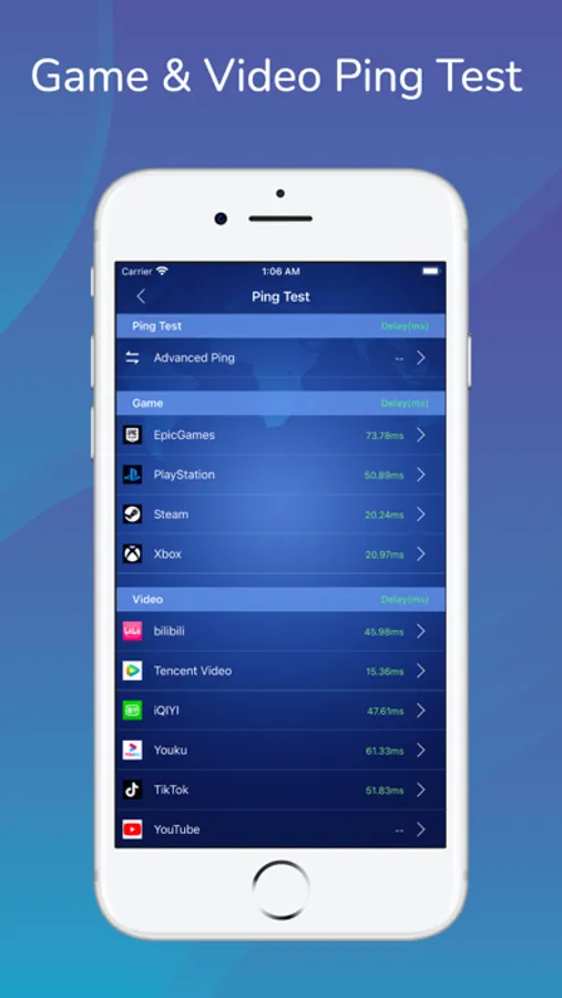 Ping test, video, games, social networking, network delay test, route tracking, IP search according to the domain name, net detection, etc.