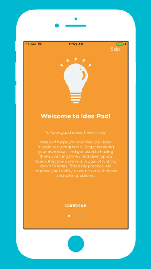 IdeaPad is very simple: write or speak your idea. Save it. Repeat. The main purpose of IdeaPad is to practice expressing them, not to make sure they are all great, not to develop them into something bigger, not to judge them. All of these steps come later. Because of this, IdeaPad doesn’t allow you to edit past ideas. You can’t delete them (unless you delete the app). You can only add to them. Get used to producing ideas... and producing lots of them.