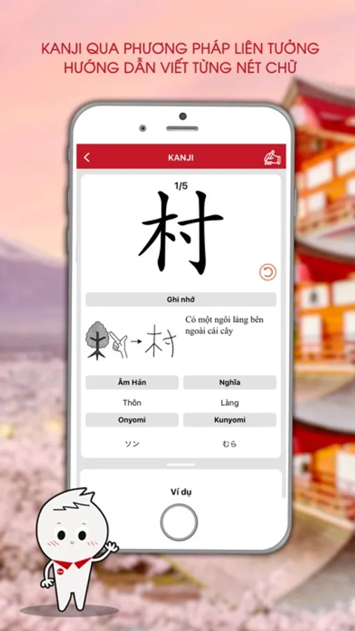 Học qua hình ảnh mô tả và hướng dẫn viết theo từng nét, kết hợp luyện tập qua sách tặng kèm.