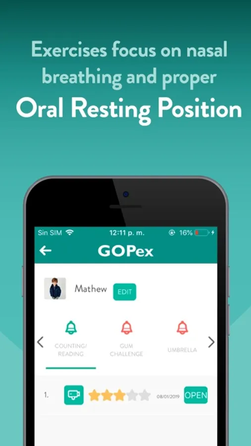 GOPex app is intended for parents who want to help their kids (ideally from 4 to 18 years old) achieve the best postural habits for optimum face development and health.