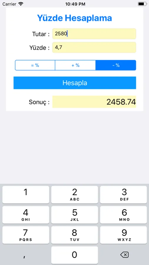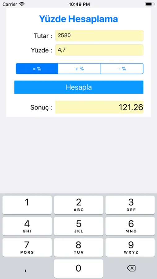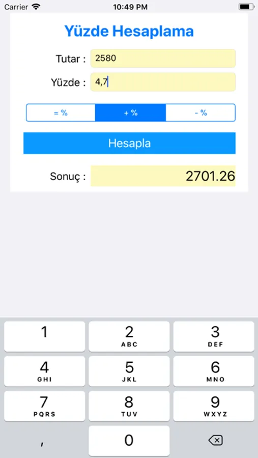 Yüzde hesaplama mı yapmak istiyorsunuz? Bir rakamın belirli bir yüzdesini bulabileceğiniz ve aynı zamanda bu yüzdeyi rakama ekleyip çıkarabileceğiniz hızlı çalışan bir uygulama.
