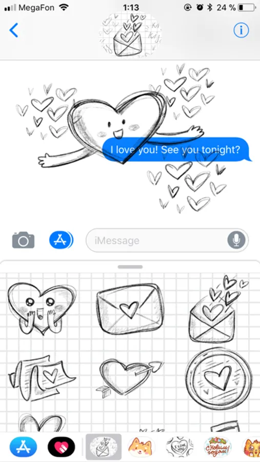 Make a bit of love mess in your messages with this cute sticker doodles :) Hand drawn pencil stickers to share some love!