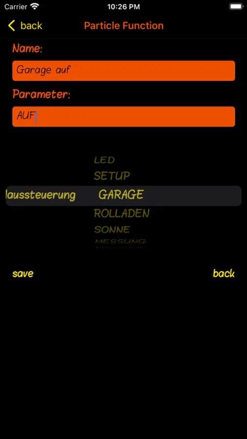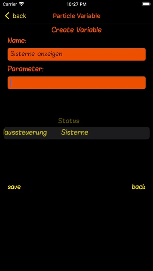 To all the ©Particle Photon owner you can comfortable create a control by choosing your function or variable via a Picker and bring it on your device. Check my homepage for an example of how to use this app.