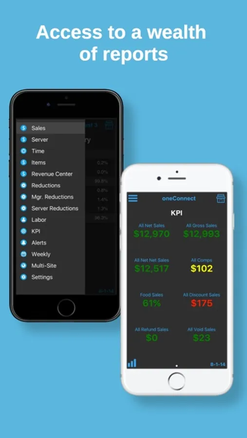 View and track real time sales data for a set of configurable locations. In addition to this feature, oneConnect also provides a configurable key performance indicator screen that allows users to track the most meaningful data. Multi-site screens are also provided to view sales data across all configured sites. Alerts are also supported on oneConnect, and are set up through the POS. This will generate an alert report where users can determine and select the alert level for each type of event, one of which is to push notifications.