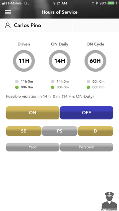 DOT FMCSA self-compliant application to record driver duty status and meet the following regulations: