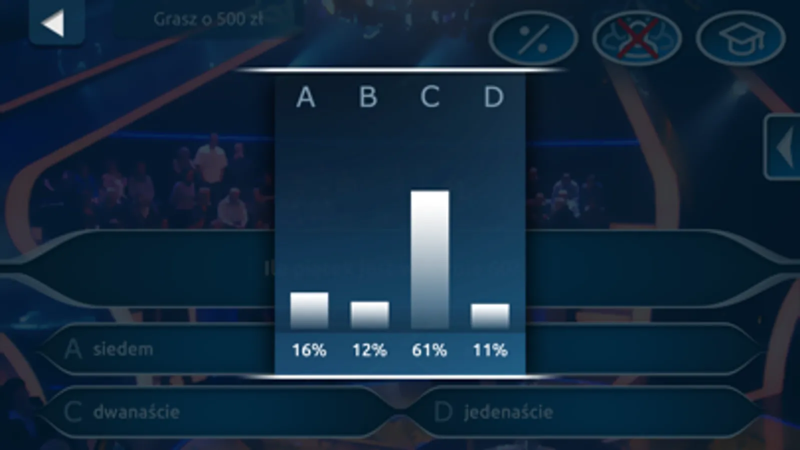 Jako gracz masz do dyspozycji 3 koła pomocnicze: Pół na pół, Pytanie do publiczności oraz Podpowiedź eksperta!