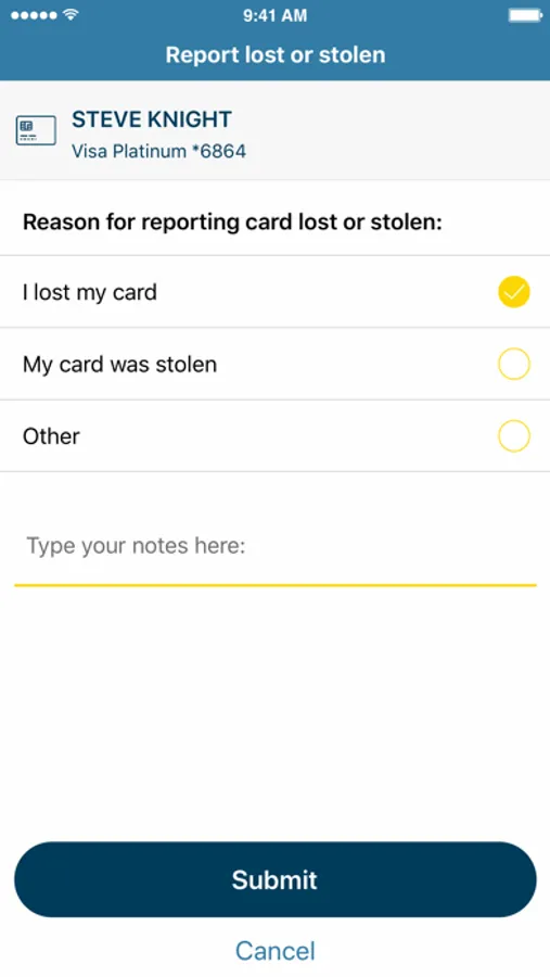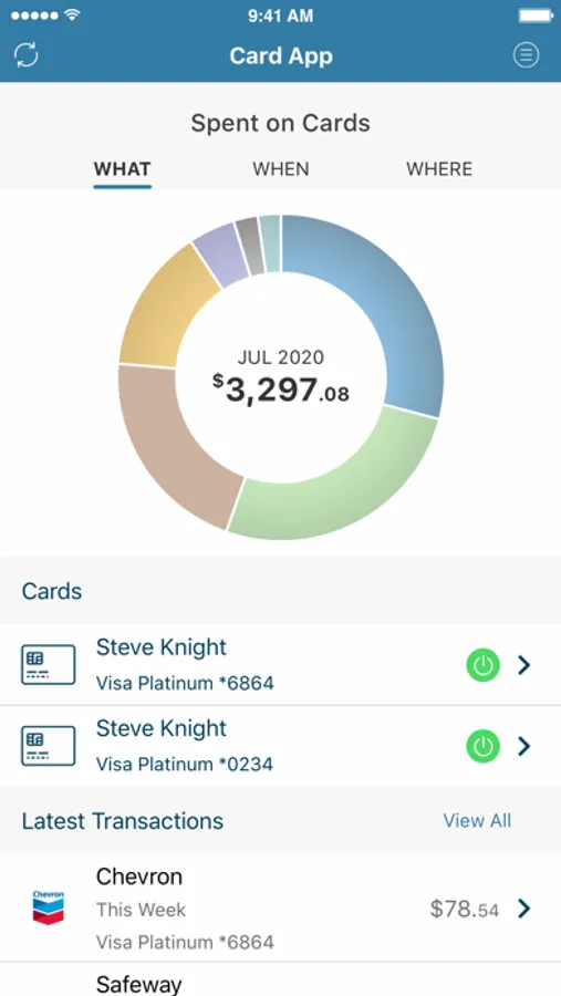 • Get 24-hour self service at your fingertips. Activate cards, tell us when you’re traveling and report cards lost or stolen.