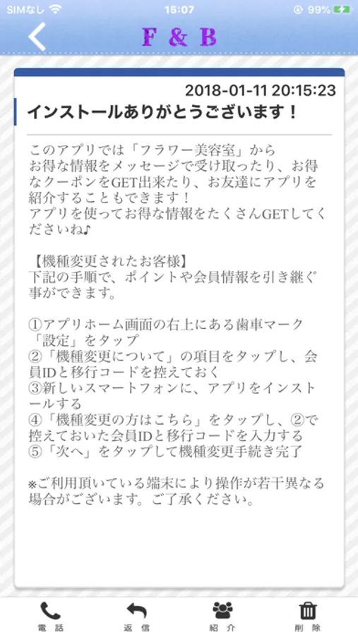 このアプリでは、F&Bの最新情報の受け取りや便利な機能を使う事ができます。