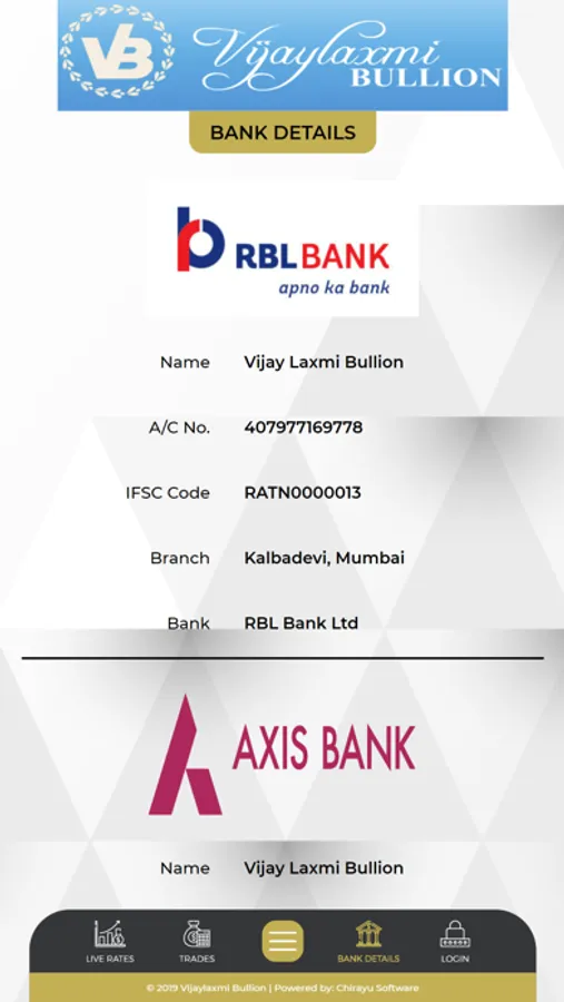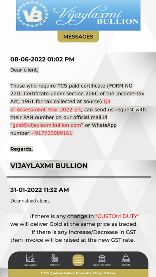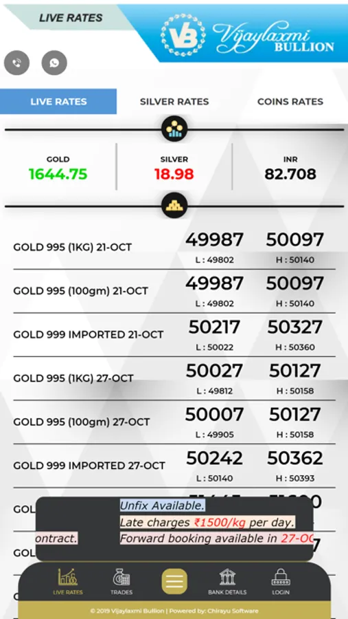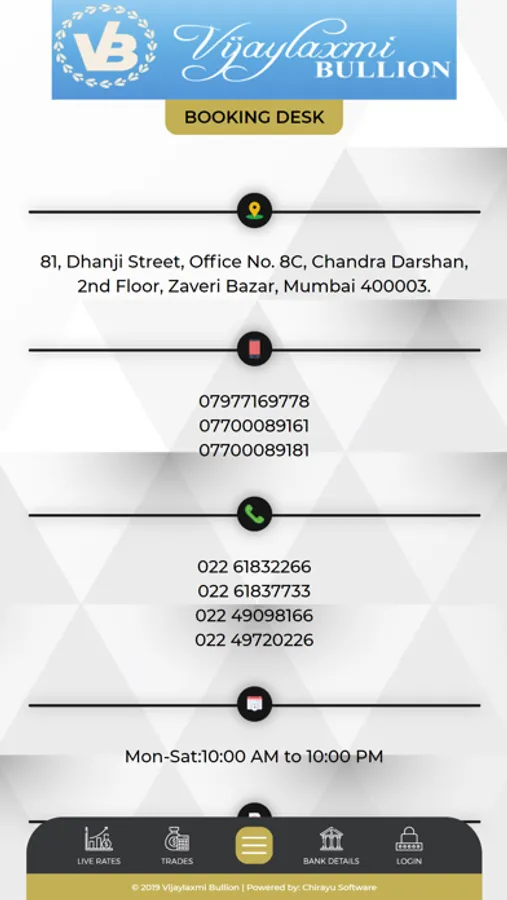 Vijay Laxmi Bullion brings you its latest Mobile app to get latest Gold and Silver Bar rates of Zaveri Bazar, Mumbai.