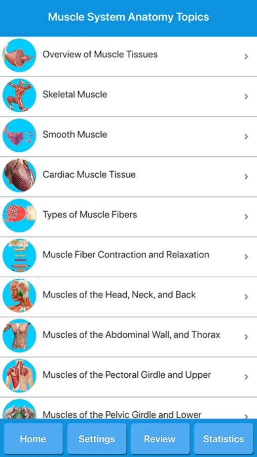 Get muscle anatomy, common diseases, muscle diagrams and quizzes. This app is suitable for students and for everybody willing to learn more knowledge about human muscular system, or even for medical professionals, nurses and teachers.