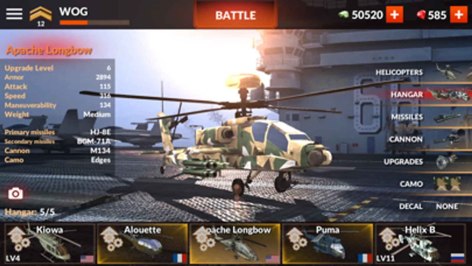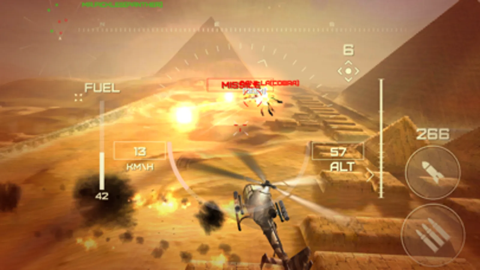 Highly customizable gunship with machine guns, guided missiles, heat traps, camouflage and decal types.