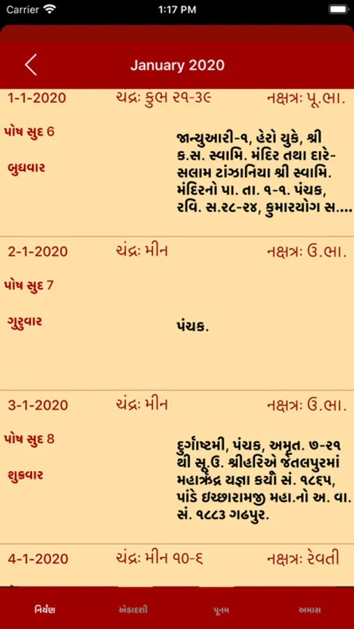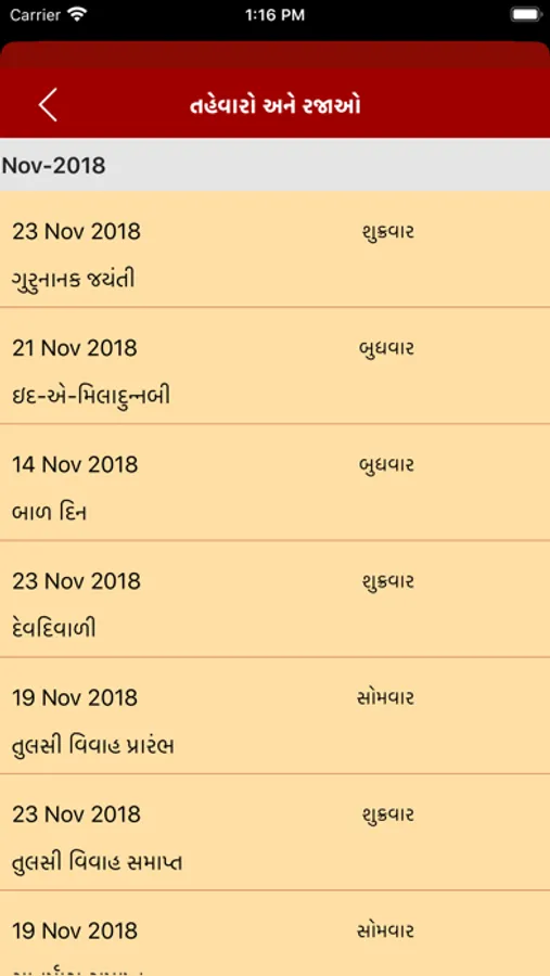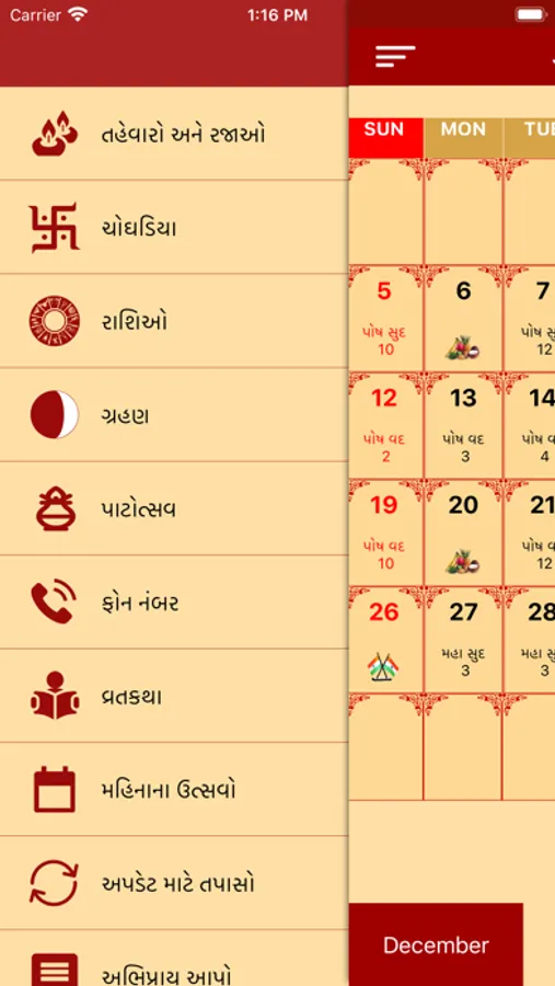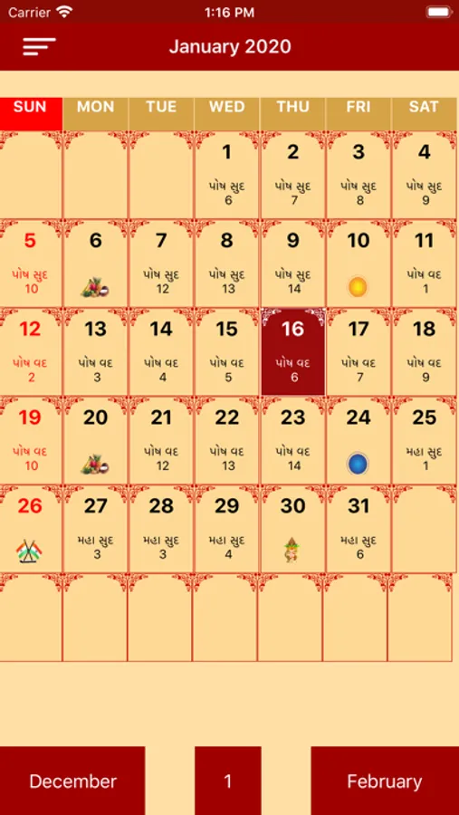 A simple Gujarati (Hindu) calendar with the traditional print copy look and feel but with the added benefit of user interaction to find more details about a specific date. The calendar will help you to find when the next Ekadashi is, what the Paksha (Sud,Vad) on a particular day is, when the next Poonam is (Full Moon) or the next Amavasya is and many more Hindu events in easy visual representations; due to images being used to represent key events, even a person who cannot read Gujarati is able to use the app.