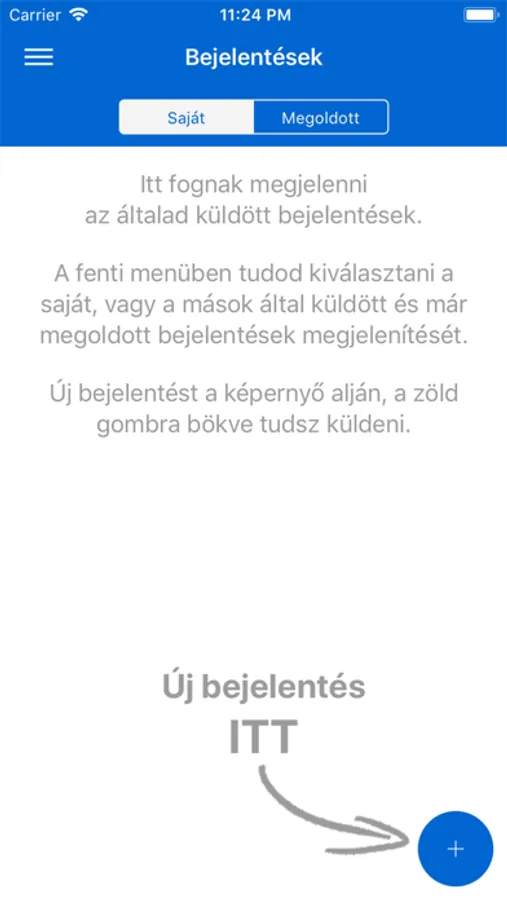 Bejelentés módjának részletes leírása, a menüpont kezelése a mobil alkalmazáson belül megtalálható.