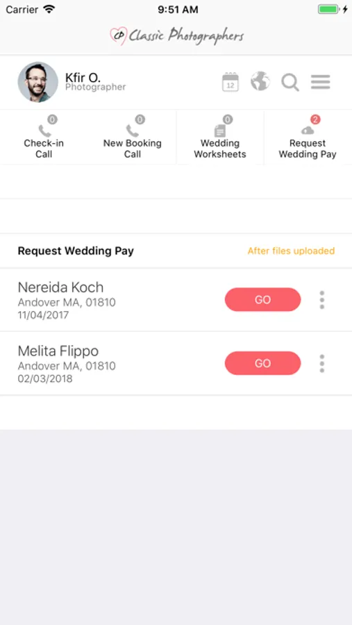 The Classic Photographers Mobile Application is the photographer’s mobile solution to managing your Classic Photographers weddings. In the app you will have full control over your calendar management, client contact information, wedding day worksheets and more!