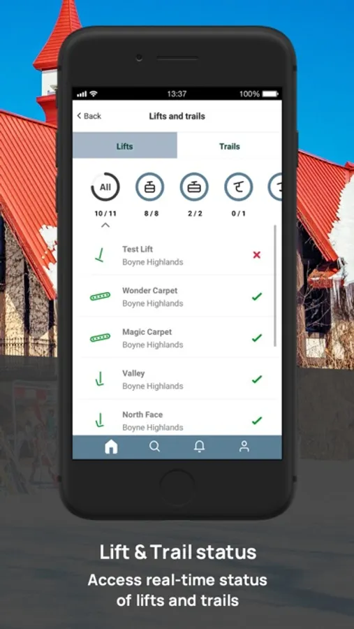 The ability to enable push notifications for real-time updates on lift status, snow conditions, and exclusive, limited time only resort deals while you are on-site, are available to app users only.