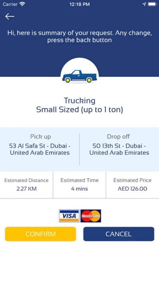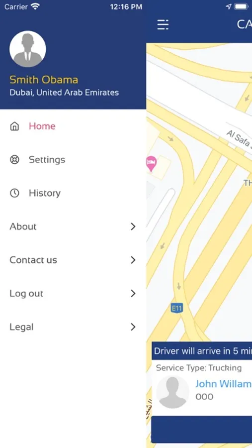 You will see a picture of the driver designated to serve you, details of the vehicle, and you can track the truck or service on the map until it reaches the desired destination.
