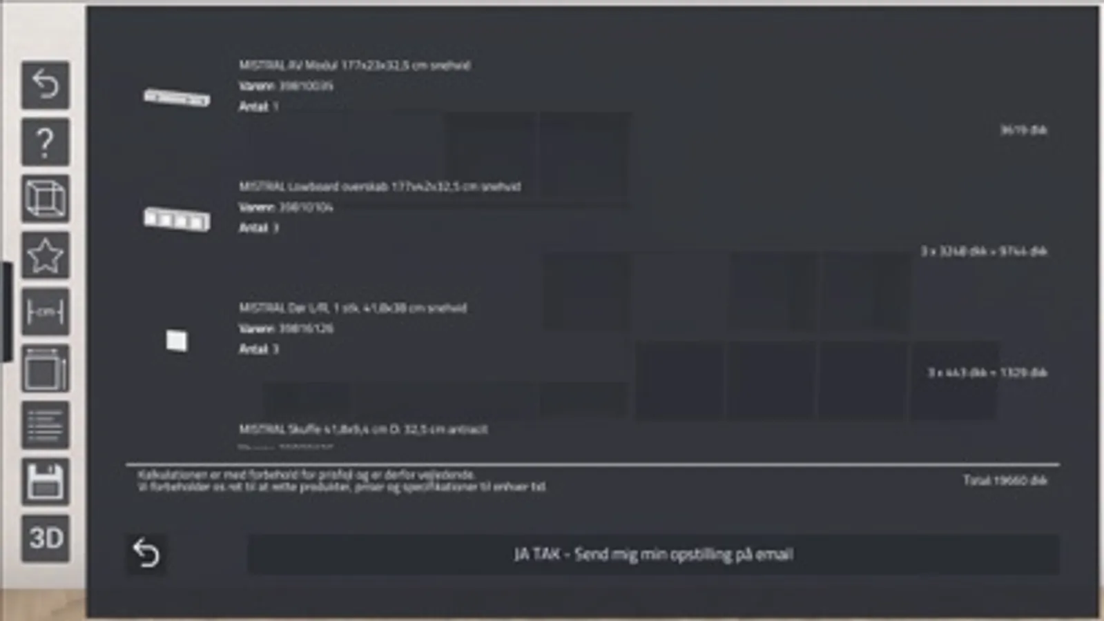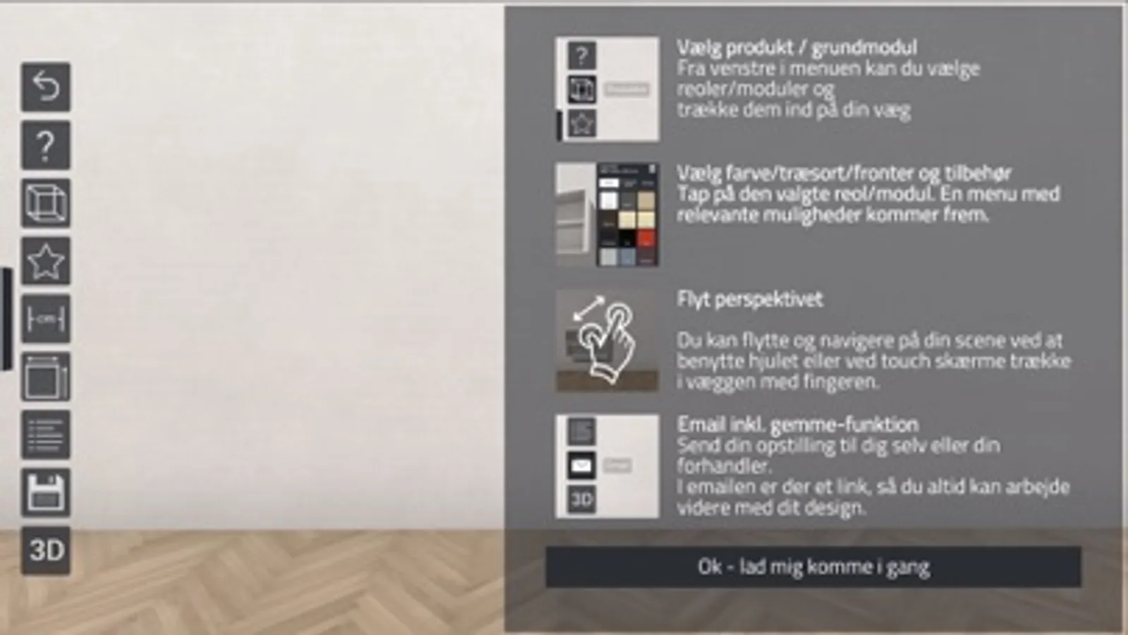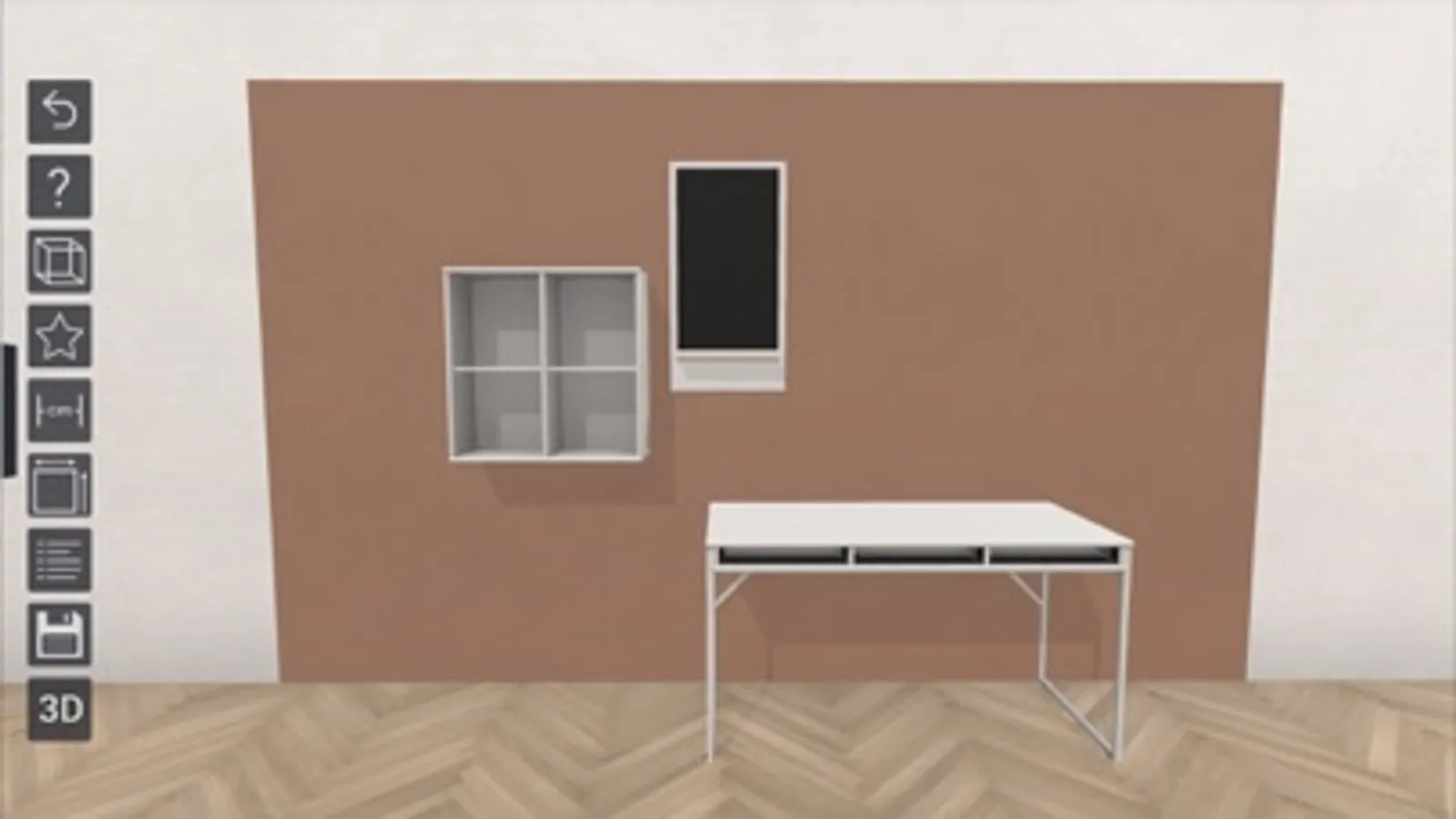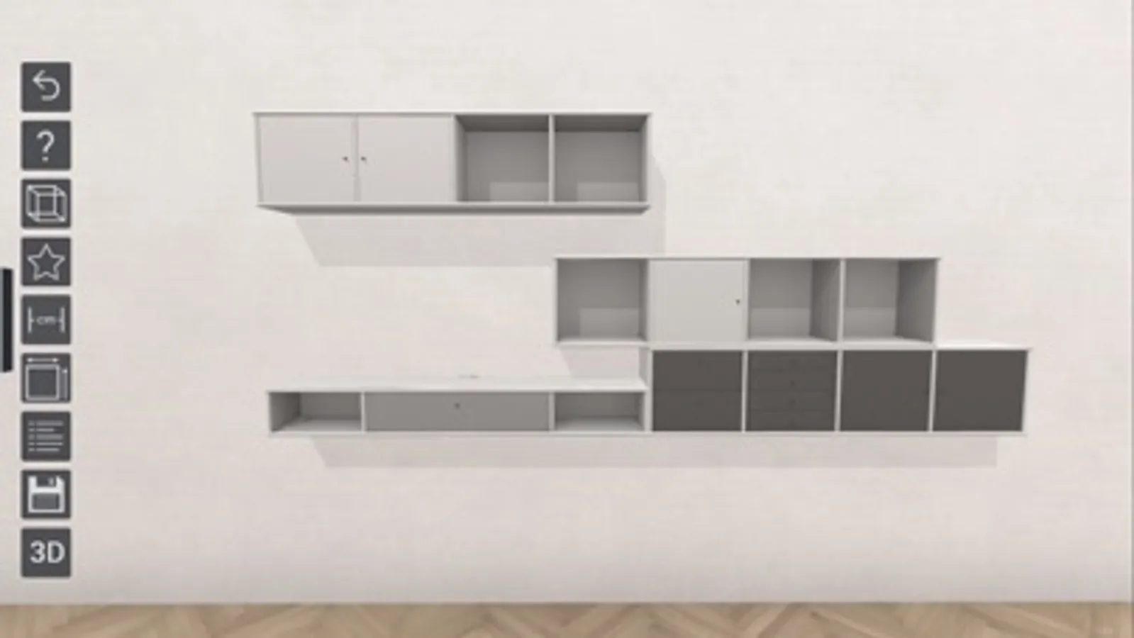 When you have downloaded the App, and printed/picked-up the marker, you place the A3 marker at your wall where you want the product. Choose between our entire selection of products and the different colours and accessories and the sideboard / shelving unit are placed at your wall in real size and in 3D.