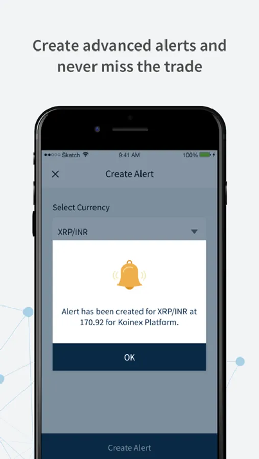 Along with price check,the app provides a special "Alert System" facility in which you can set your CryptoPrice Alerts according to the platform and the App will alert you in the form of notification whenever several alarm conditions are satisfied.