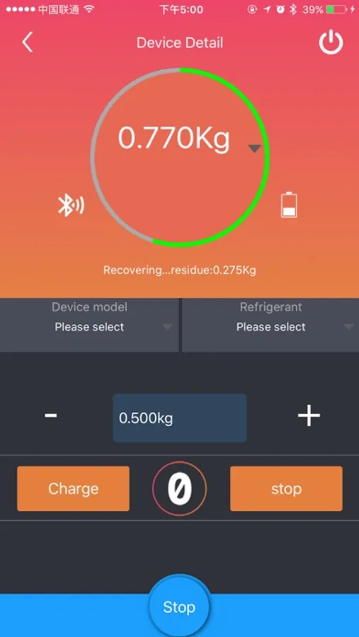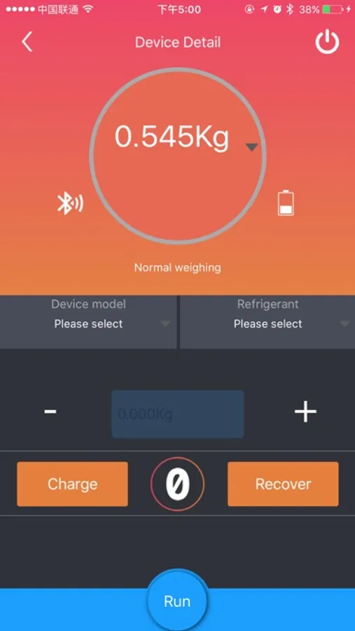 The scale is used to control refrigerant-related operations, e.g. to charge and recover the refrigerant of various refrigeration equipment; to clear, display real-time weight, alarm, etc.; to weigh the refrigerant of refrigerating systems of vehicle A/C, commercial A/C, cold storage, etc. and in refrigerating engineering and maintenance; traceable charging, recovery and refrigerant data records.