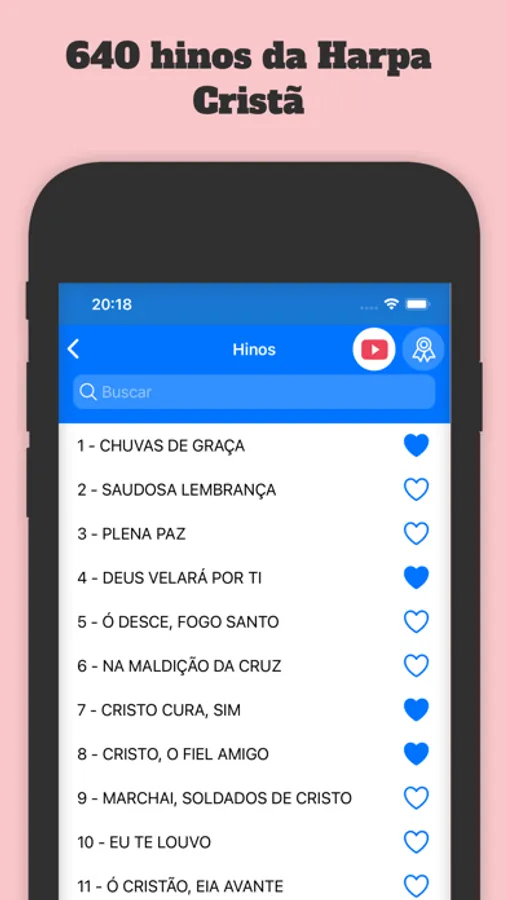 Ao todo são 640 hinos da Harpa Cristã, que é o hinário da Igreja Assembleia de Deus no Brasil com áudio e cifras. O melhor aplicativo da Harpa Cristã com áudio de todos os hinos com opção de baixar o hino da harpa para ouvir offline.
