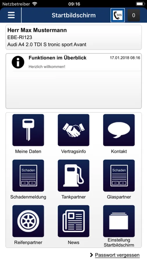 Der Startbildschirm zeigt im oberen Bereich Ihre aktellen Fahrzeugdaten an.