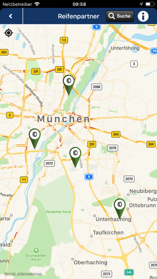 Hinweise und Anzeige unserer Reifenkooperationspartner sowie direkte Navigation über Ihr mobiles Gerät