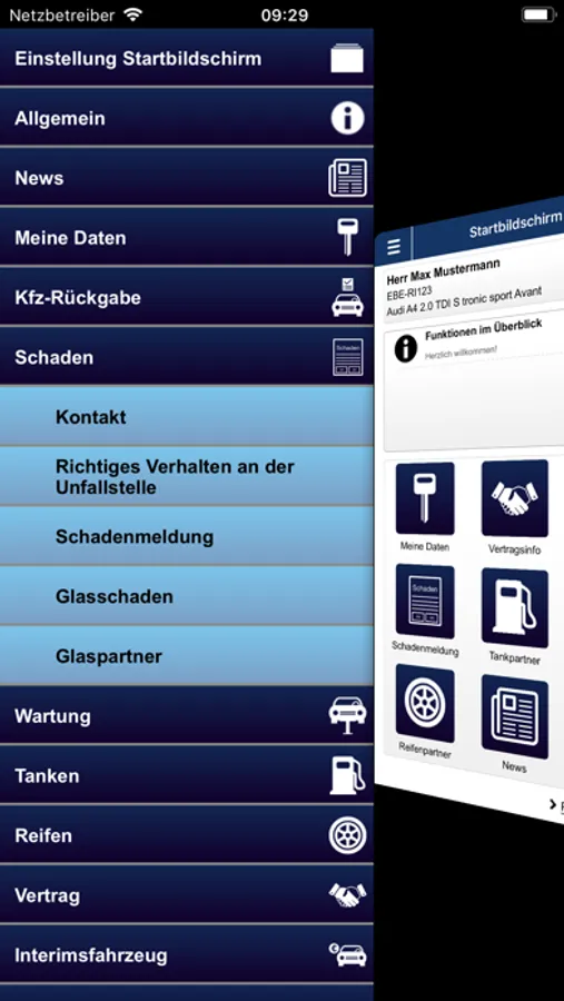 Über den Menüpunkt „Schaden“ gelangen Sie zu: