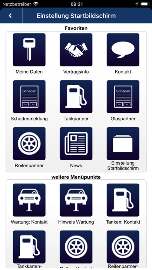 Die im unteren Bereich angezeigten Icons können Sie unter „Einstellung Startbildschrim“ Ihren persönlichen Bedürfnissen anpassen. Es können max 12 Icons eingestellt werden