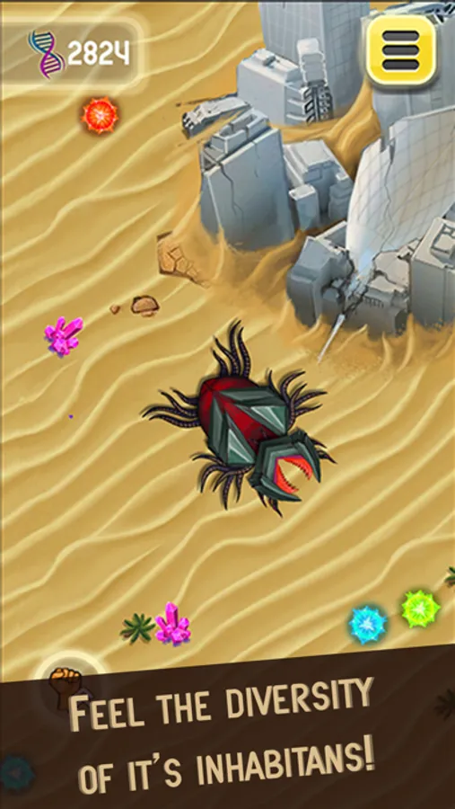 Collect plasma clots of energy and crystals, destroy your enemies, absorb their genetic code (DNA) and evolve in order to dominate monsters who dare to challenge you. Become a monstercrafter and decide by yourself how your new monster will look like. Feed and grow your own fighting monster. Don’t make monsters starve! Use genetic code collected in clashes of monsters and create a new organism. But remember, in this dangerous universe there is no space for herbivore species of monsters. Only carnivorous predators can survive and evolve. This place is for meat eaters only.