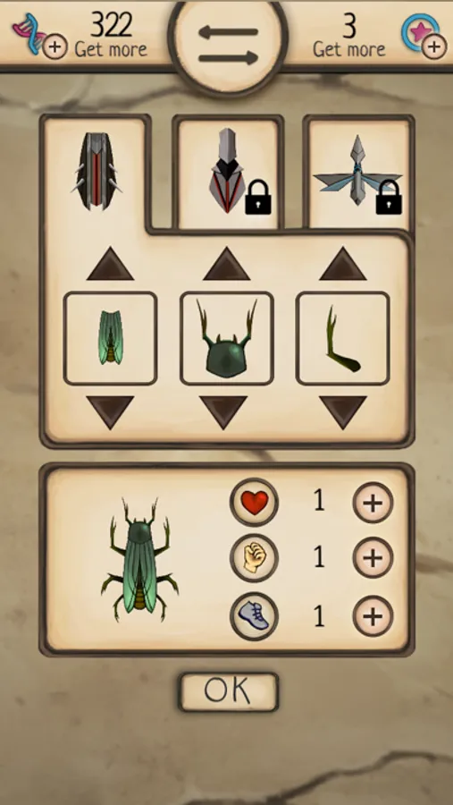 There are three main evolution stages available but each of them has hundreds of configuration allowing to make your mantis, ant or cockroach truly unique! Just eat DNA and evolve!
