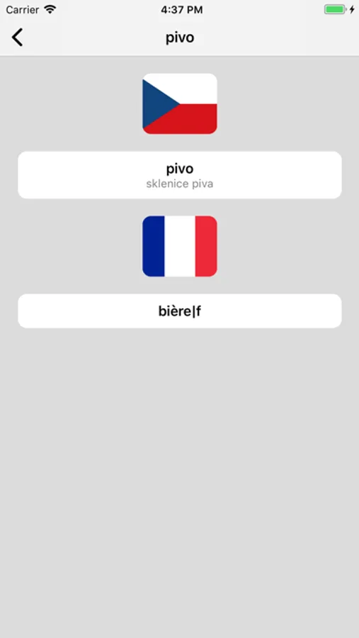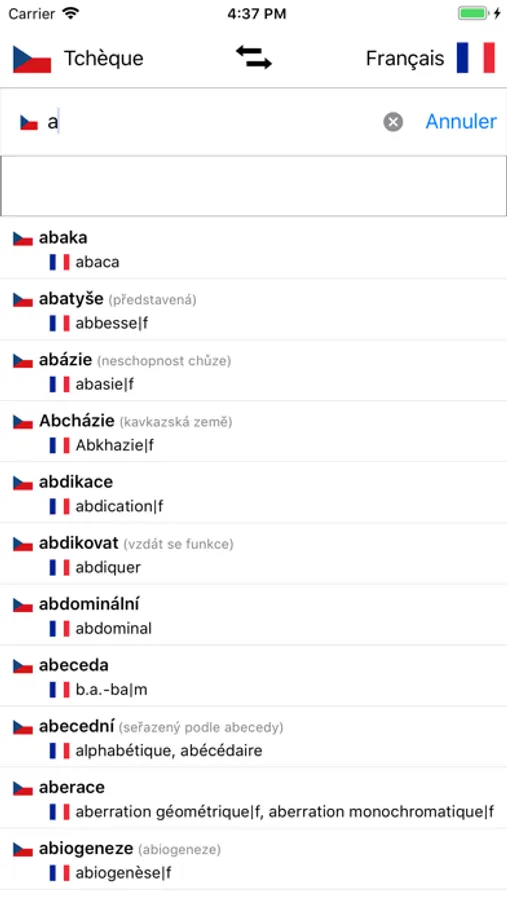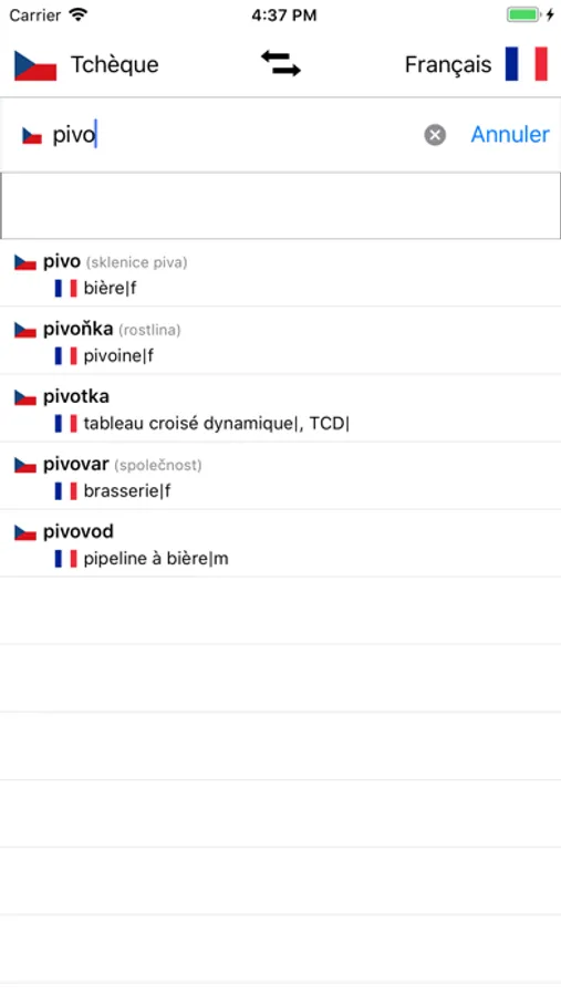 - Recherche à partir des mots en français et à partir des mots en Tchèque