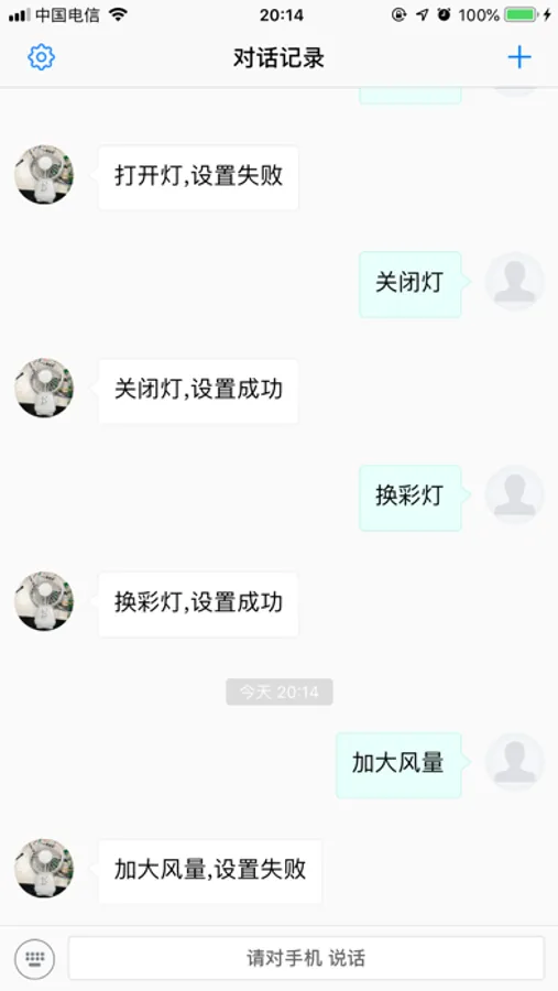 2)设备连接上APP后, 即可对手机说话, 控制设备.