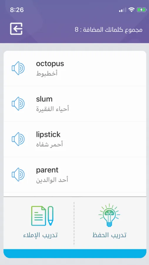 سيقوم التطبيق بتعليمك الكلمات الجديدة بكل سهولة سواء حفظ او املاء