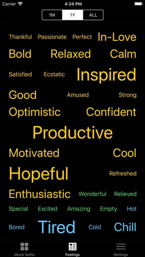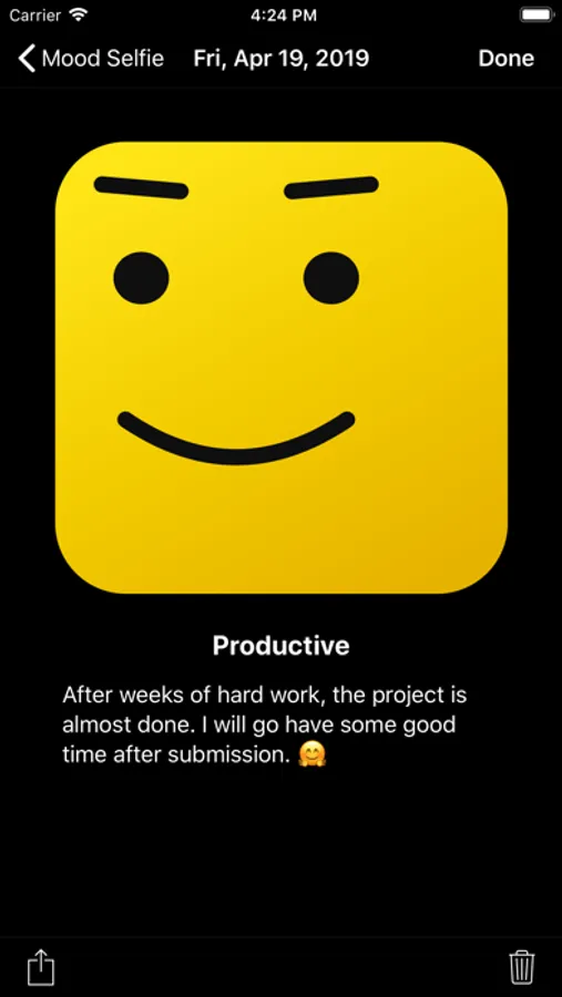 If you would like a detailed record, Mood Selfie has more than eighty builtin feelings to choose from. You can also use it as a diary to elaborate on your moods.