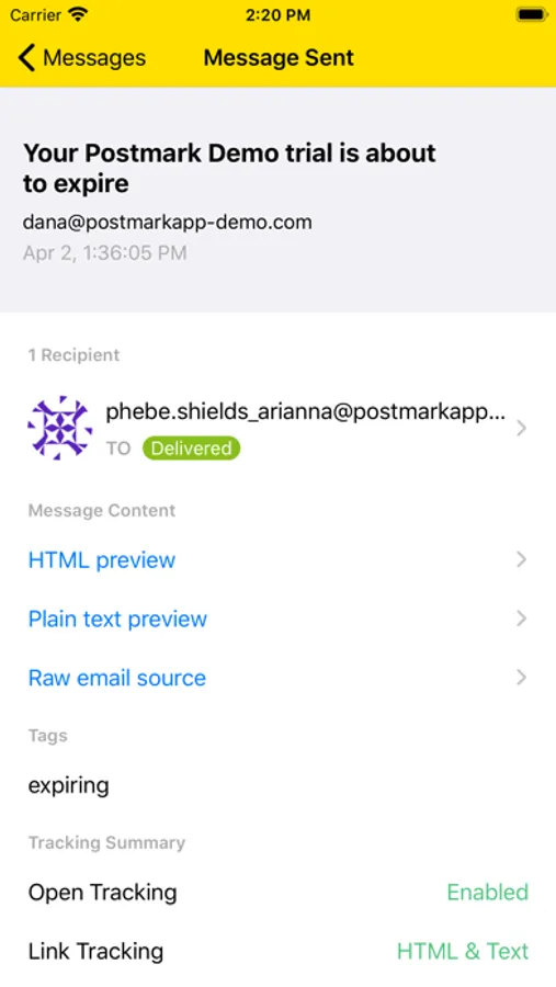 Take Postmark’s powerful email monitoring and troubleshooting tools with you everywhere: