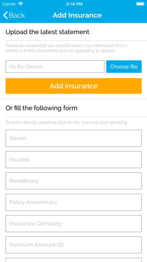 STEP 2: Upload your vital information such as life and health insurance Information, banking and retirement accounts, and significant legal and contractual documents.