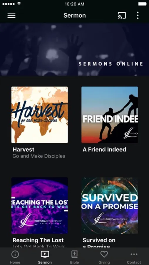 Welcome to Faith Christian Fellowship World Outreach mobile app. This app is a fast and easy way to get connected to resources that will help you grow and stay connected. Check out the various content that interests you.
