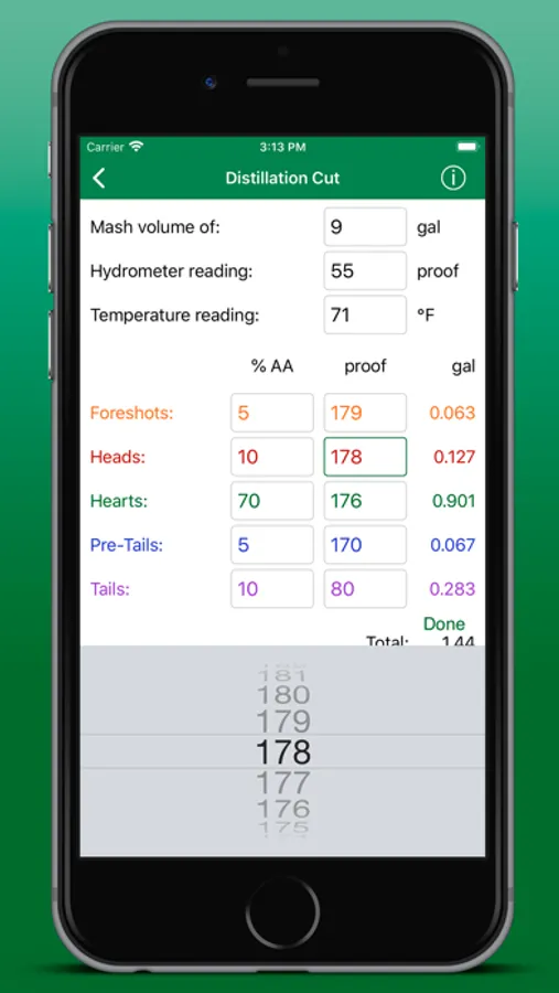 • Mash Maker – calculate mash parameters, such as water, yeast requirements, alcohol amount prediction. All calculation based on specified ingredients list, its amount and desired total volume of mash