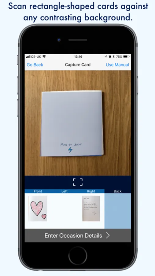 - Manual mode allows you to take a photo of less conventionally shaped cards