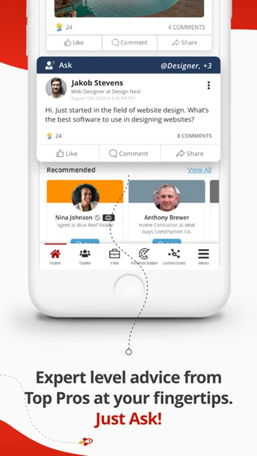 We’ve all been there. You have an important question you want answered by a specific profession. Through the Ask the Pro feature, you’ll gain access to thousands of professionals looking to answer your questions. Simply post your question, pick the profession you want answers from, and choose the geolocation you want to target. Within minutes, you’ll start receiving answers from other professionals. It’s that easy.