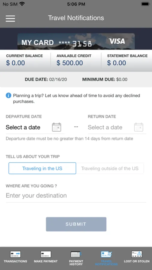 • Set up travel notification.