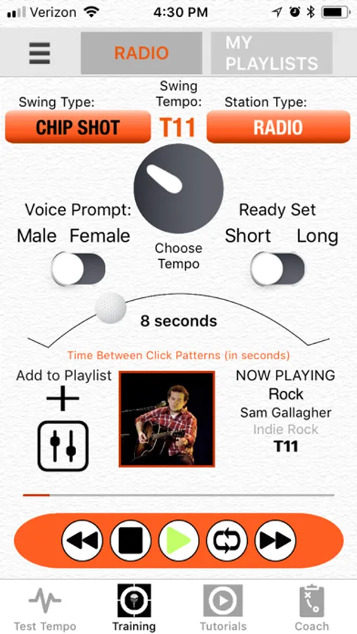 Training: The Radio is tuned to your tempo and plays audio tracks scientifically engineered to fit the rhythm of the sports movement. They comprise voice prompts, rhythmic patterns, and instrumental music in many genres and speeds to fine tune your game.