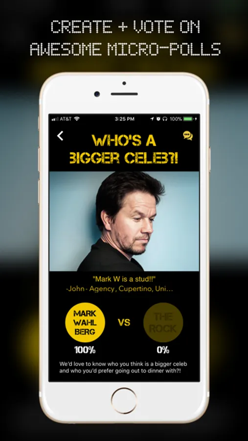 Categories for the micro-polls range from sports, dating, entertainment, celeb, current events, politics, tech, fashion, lifestyle, etc.