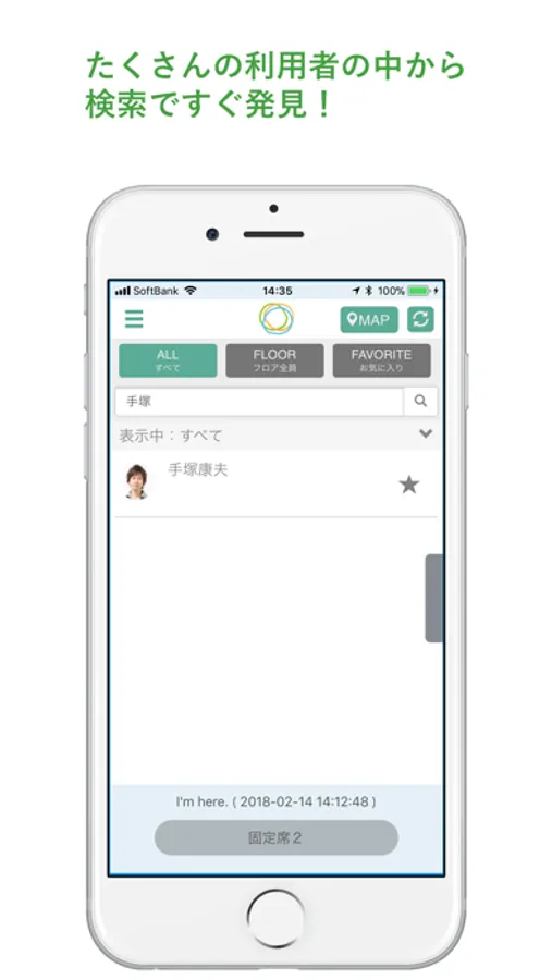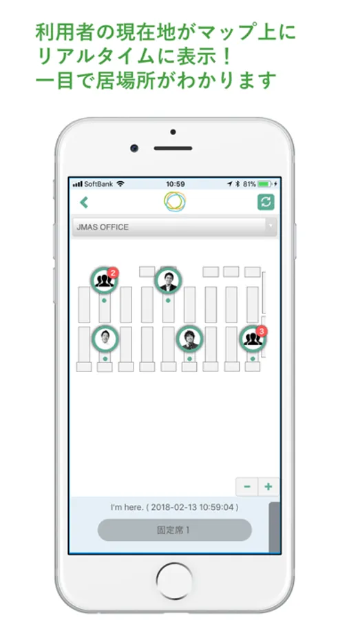 「Beacapp Here」はiPhoneとビーコンを使って、 オリジナルのマップ上で所在地を確認できる法人様向けのクラウドサービスです。短期間で導入可能で、オフィスや作業現場の所在地を見える化することで業務の効率化に貢献しています。