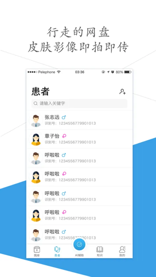皮肤科医生专属的皮肤影像管理工具,提供皮损图片的疾病名、日期、患者、部位的分类管理,海量,随时随地进行皮肤影像的管理。