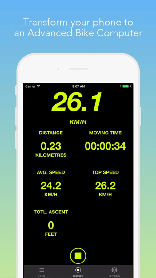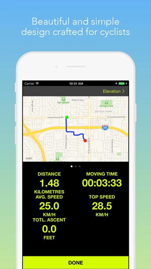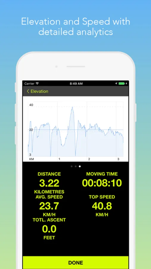 You can measure your average speed, maximum speed, moving time, total elevation gain with this app