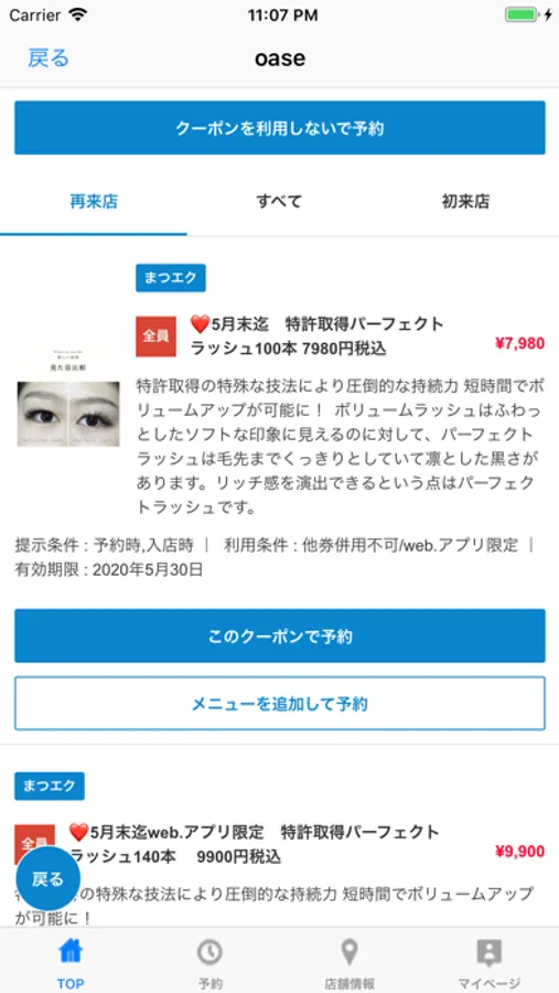 お得なクーポンが配信されます。ネット予約時にクーポン利用での予約も可能なので来店時もスムーズに施術頂けます。