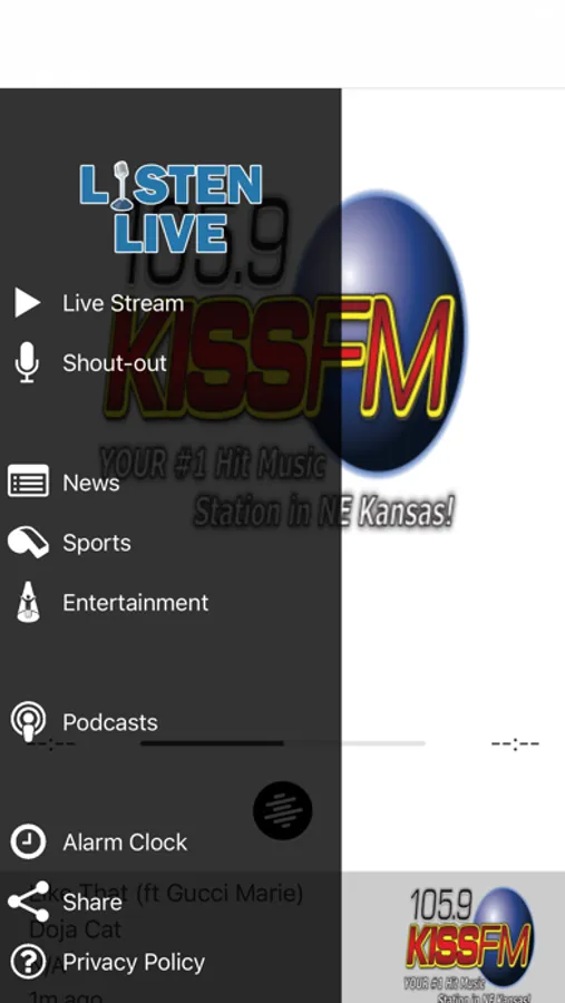 - Use the alarm clock to wake up to 105.9 KISS FM.