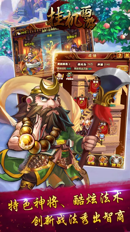 玄幻的西游背景,多选择的神将转职路线、自由的阵容搭配,尽在你掌握之中。二十四小时无间断自动战斗,酷炫的技能特效,带你踏上不一样的西行之旅!