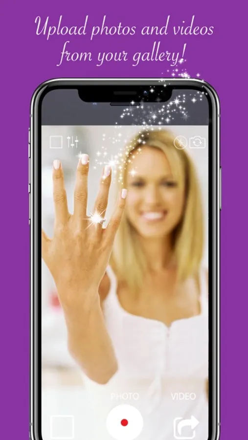 Have fun adding beautiful sparkle and glitter effects to your photos and videos. Upload photos and videos directly from your gallery, or take a new live one within the app!